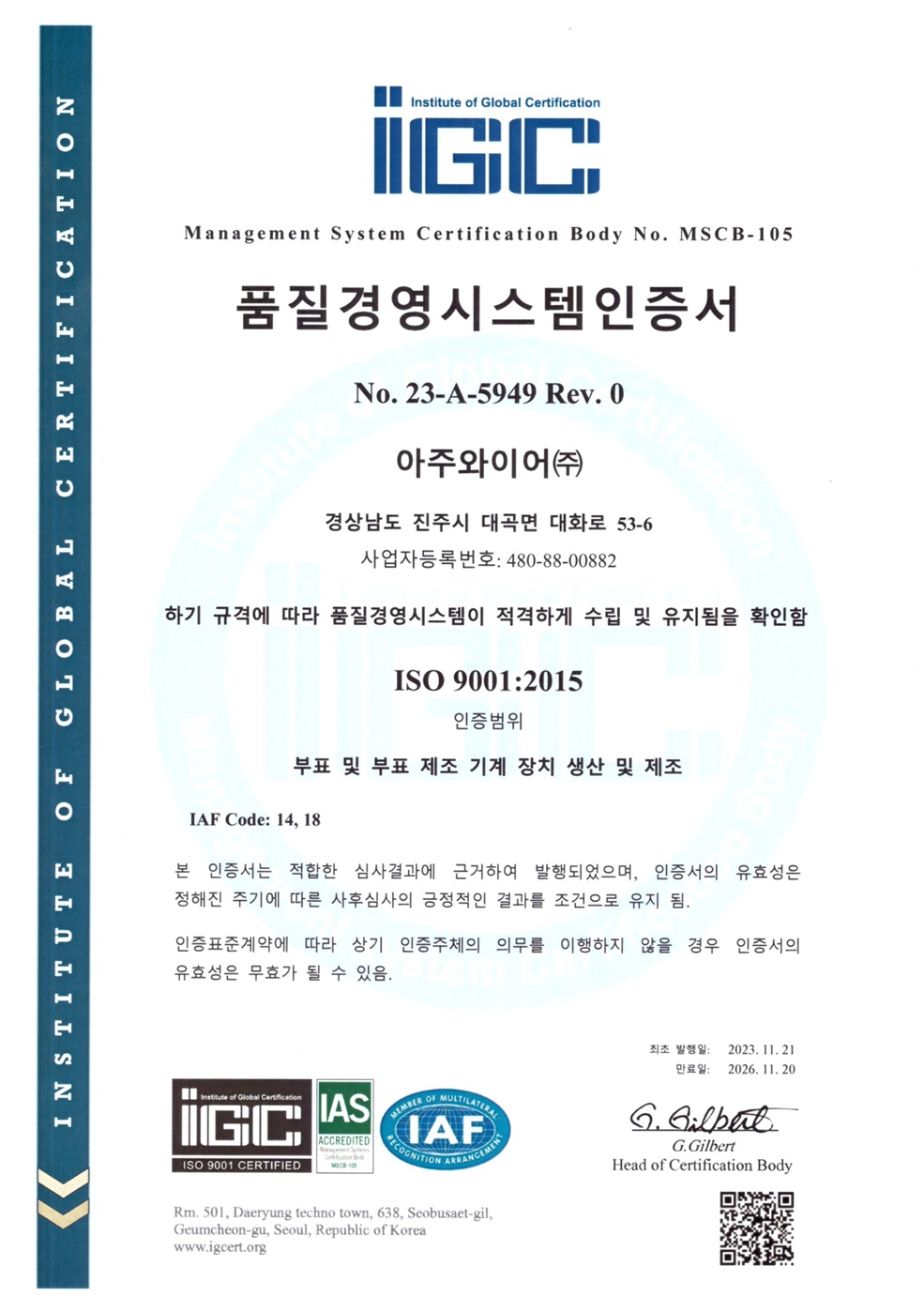 인증서 ISO 9001