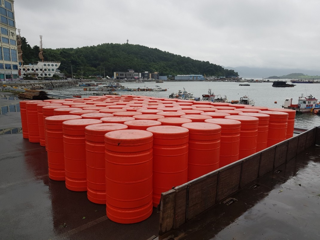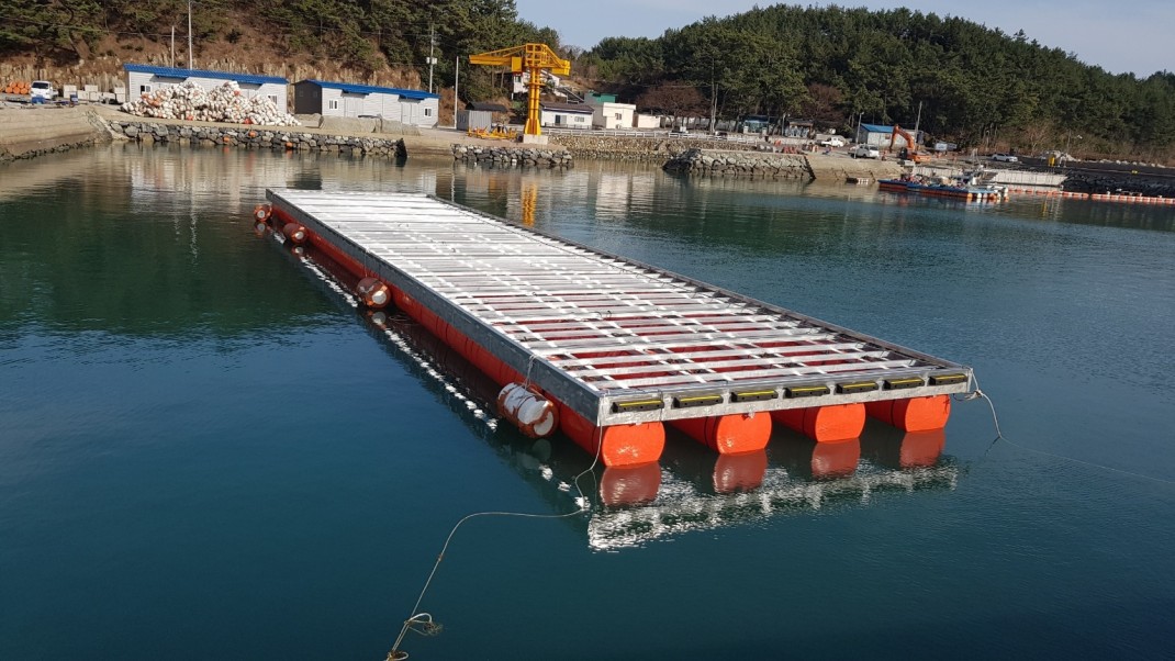 아주와이어(주) 친환경 인증 뗏목용 부표 시공 사진입니다.